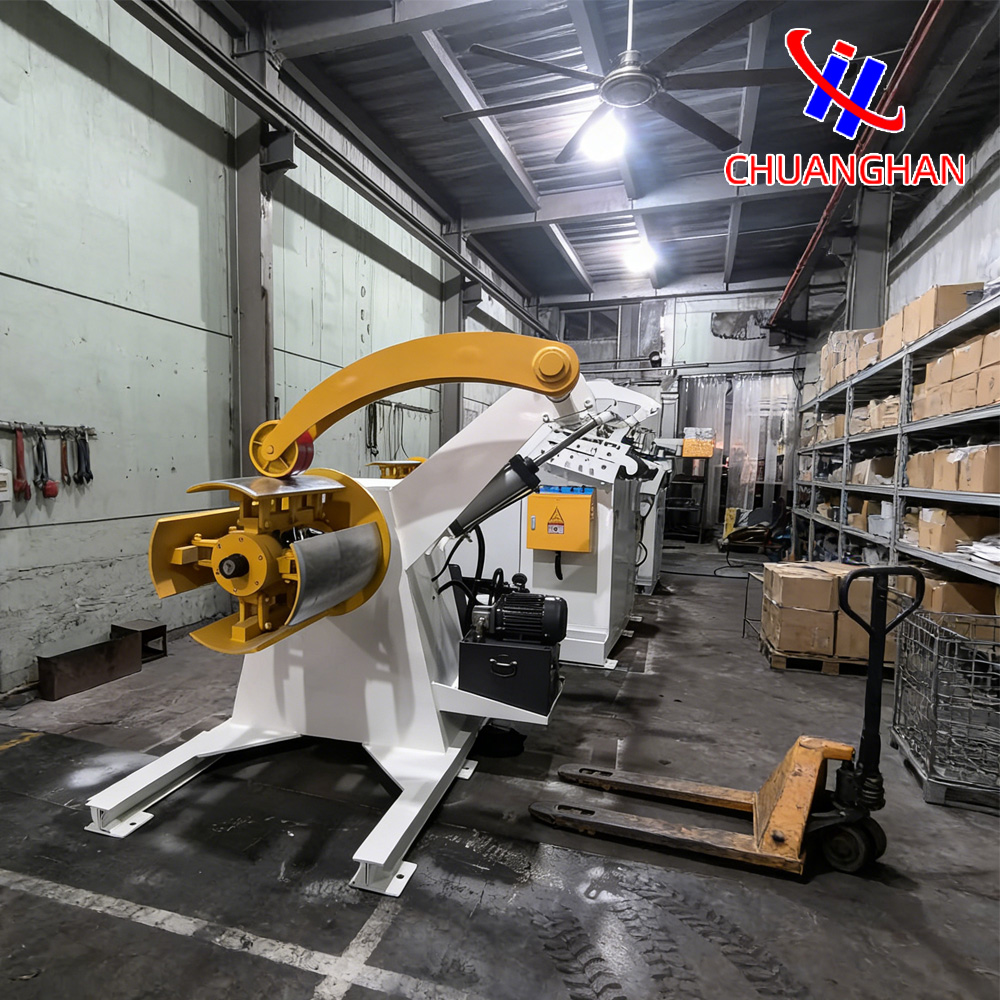 إن آلة فك اللفائف الأوتوماتيكية الطرفية للضغط الهيدروليكي مع ذراع إيقاف المواد، وهو عرض رئيسي من شركة Ningbo Chuanghan Automation Equipment Co., Ltd.، عبارة عن قطعة قوية من المعدات الطرفية للضغط المصممة للتعامل مع الملفات الثقيلة في إعدادات الختم الصناعي.